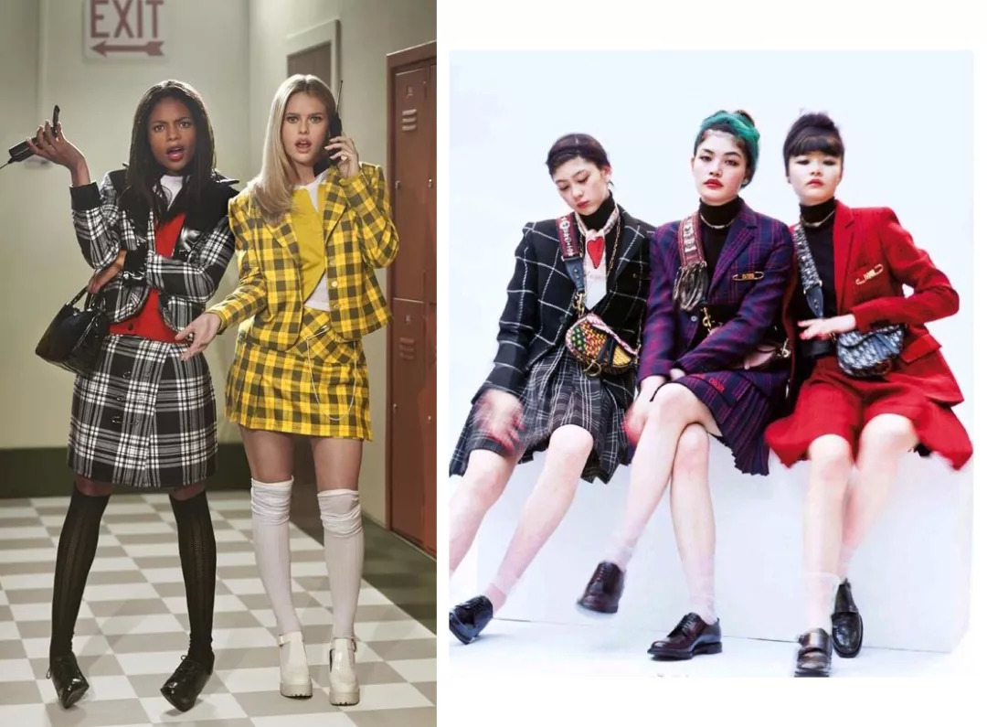 日版《Vogue》上的这组苏格兰格纹套裙look,全然就是在向90年代的电影《独领风骚》致敬。