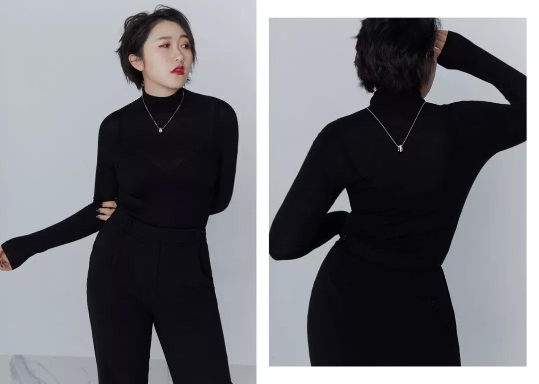同色系搭配实在太经典,饼也有copy过一身all black。在点缀方面,一条经典不过时铂金项链和一抹红唇就足以。