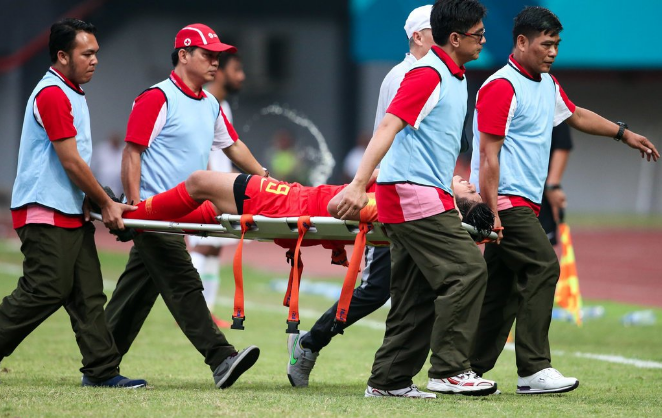 张玉宁不顾俱乐部的反对,奔赴雅加达与国奥队汇合。1/8决赛迎战沙特U21国家队,张云宁在第59分钟跟对手对脚时脚踝受伤,被担架抬下场后坐在替补席上的他掩面而泣……