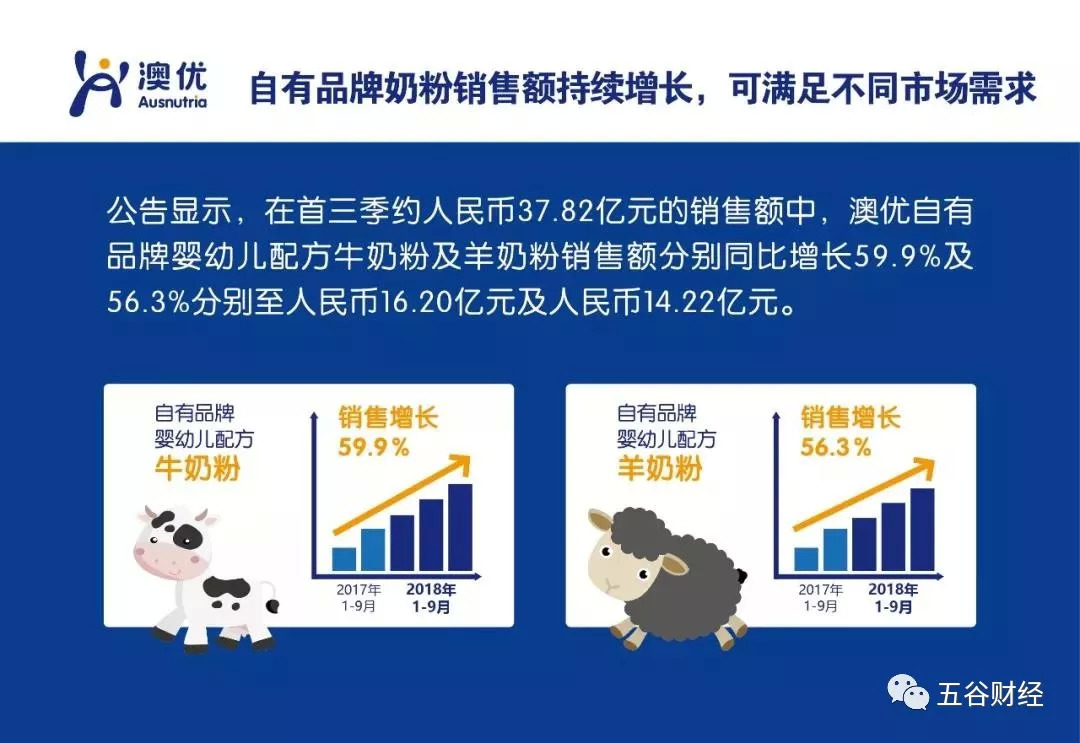 数据显示,在首三季约37.82亿元的销售额中,澳优自有品牌婴幼儿配方奶粉销售额同比增长58.2%至约30.42亿元。