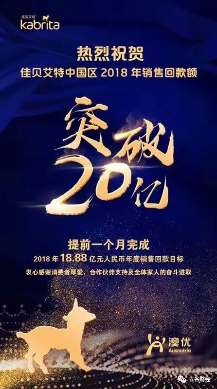 11月27日晚间,澳优(01717.HK)在媒体群里发布了一则消息,热烈祝贺佳贝艾特中国区2018年销售回款额突破20亿元(人民币,以下类同)。这也是全球首个年度回款突破20亿元的羊奶品牌!