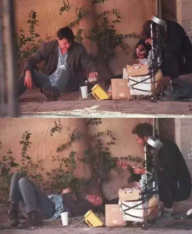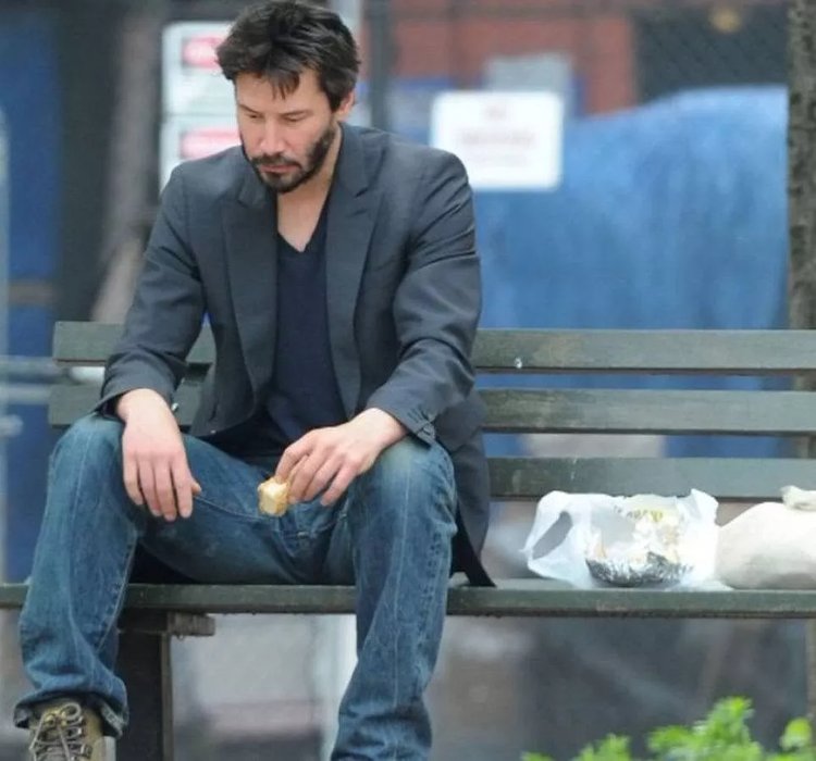 一代美男,基努里维斯,如今像个流浪汉一样在公园吃饭,连馆子都下不起了。▼