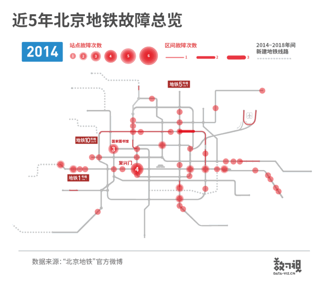 数可视扒了扒“北京地铁”微博的5年数据,算了算北京地铁各条线的拥堵指数和故障指数,希望能让天天搭地铁的你少点几率遇到拥堵+故障的“悲剧“。
