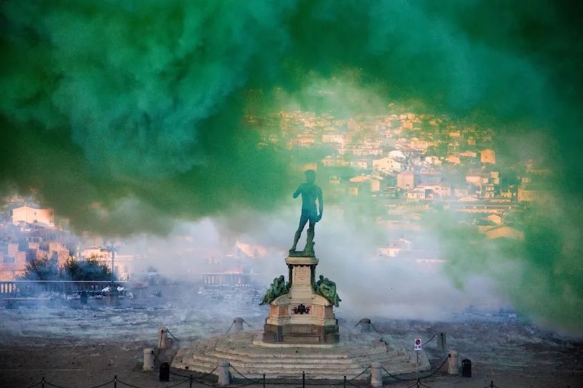 然而,比批文更加捉摸不定的是天气。佛罗伦萨在两天前遭遇了寒流,事先无法确定爆炸时候是晴时雨,也不会知道风会有多大,往哪个方向吹。“爆破表演,50%可预测,50%不可预测。”对于艺术家来说,无论事先的准备有多么紧密周全,最后呈现的都是无法预演排练的一个瞬间。