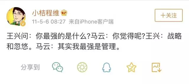 当年的美团可不像今天这样佩服阿里的管理,在2011年王兴曾经问过马云:你最强的是什么?原本王兴以为答案会是“战略和忽悠”,但是没想到马云的回答是“管理”。