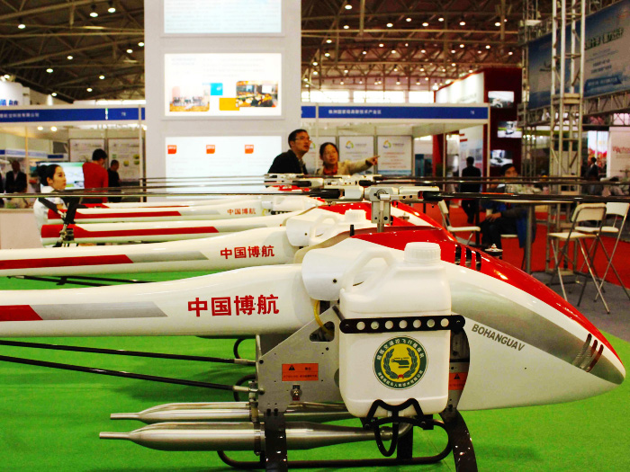 中国博航的无人机包括遥感遥测和农业植保两大类,主要适用于喷洒农业、授粉、施肥,以及农田、电力、水利、环保和交通遥感监测等。博航还配有自主研发的“无人机自驾仪”。摄影:王付娇