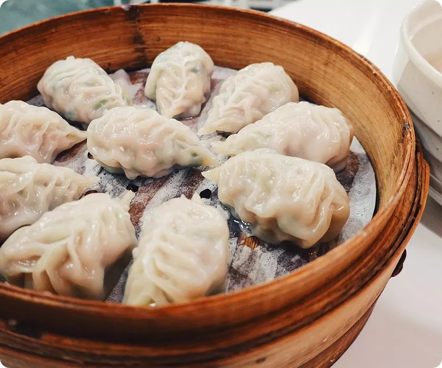 招牌柳叶眉饺是现做现蒸的,一笼要蒸够8分钟,人多的时候他们可以一次蒸10笼。只有这样才能保证饺子皮上的折叠晶莹透嫩,像个玉质的枕头。