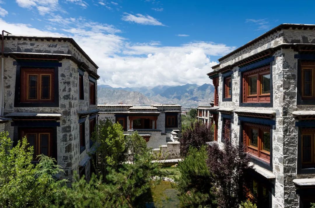 然而当我再次站到贡桑孜的门口时,却发现这座老院子已被脚手架包裹起来,大门口挂着“施工勿入”的牌子,不知是要翻新还是重建。八廓街中的老宅院已被拆毁殆尽,如今又少了一座。有人在拆老宅,也有人在建“老宅”。2015 年夏季,当雨水开始频繁光顾这座“日光城”时,拉萨人听到一个令人振奋的消息:一个来自香格里拉的老板准备用最传统的方法建造一座庄园,而且请到了曾经维修过“布宫”(拉萨人对布达拉宫的昵称)的大石匠和大木匠.于是,不少拉萨人跑到拉萨河对岸的建筑工地去参观,这才知道:这位来自香格里拉的“老板”叫白玛多吉,而大家口中的“庄园”其实是一家叫“松赞曲吉林卡”的度假酒店。