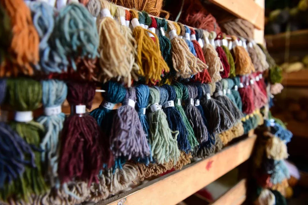 喀瓦坚地毯厂中的羊毛样品。经过传统染色的羊毛地毯色彩沉稳而优雅,完全不同于色彩艳丽的机制地毯。