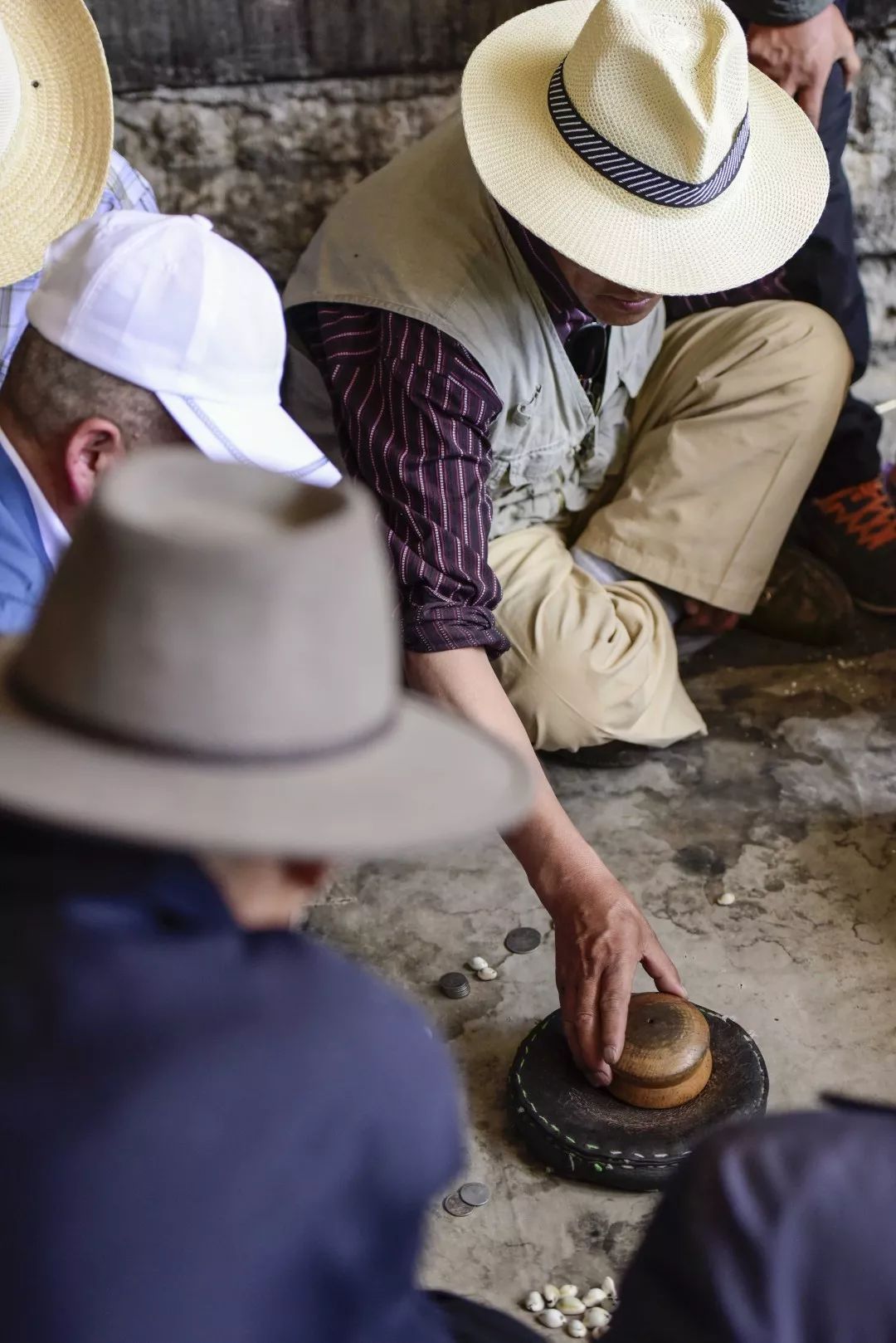 茶喝够了,话聊透了,一些闲来无事的人便会用游戏打发时间。骰子现在还能看到,当地人称为“巴热秀”,随着骰盒“啪”地一声落在皮垫上,游戏者会大声呼喝,别怪他们太吵闹,那其实是在喊骰词,正是丰富多彩的骰词才令巴热秀有别于粗俗的赌博游戏。还有一种叫“吉韧”的游戏,它与甜茶一同自印度传入西藏,至今已有100 多年的历史,你可以视之为用手指玩的康乐棋。如今吉韧的棋盘大都被收在甜茶馆的角落里,落满了灰尘,无人问津。