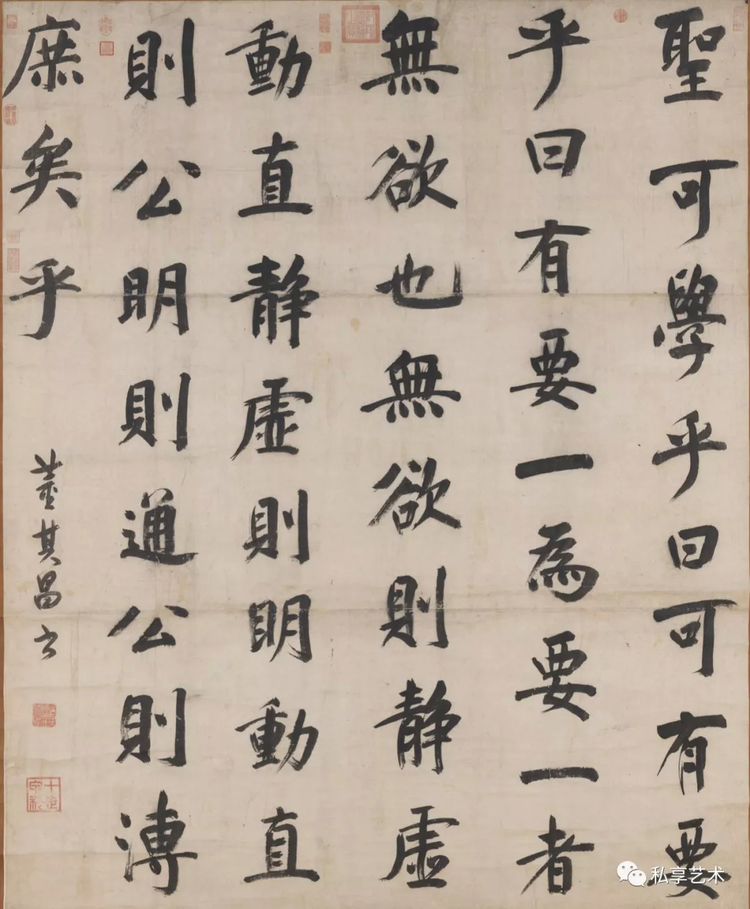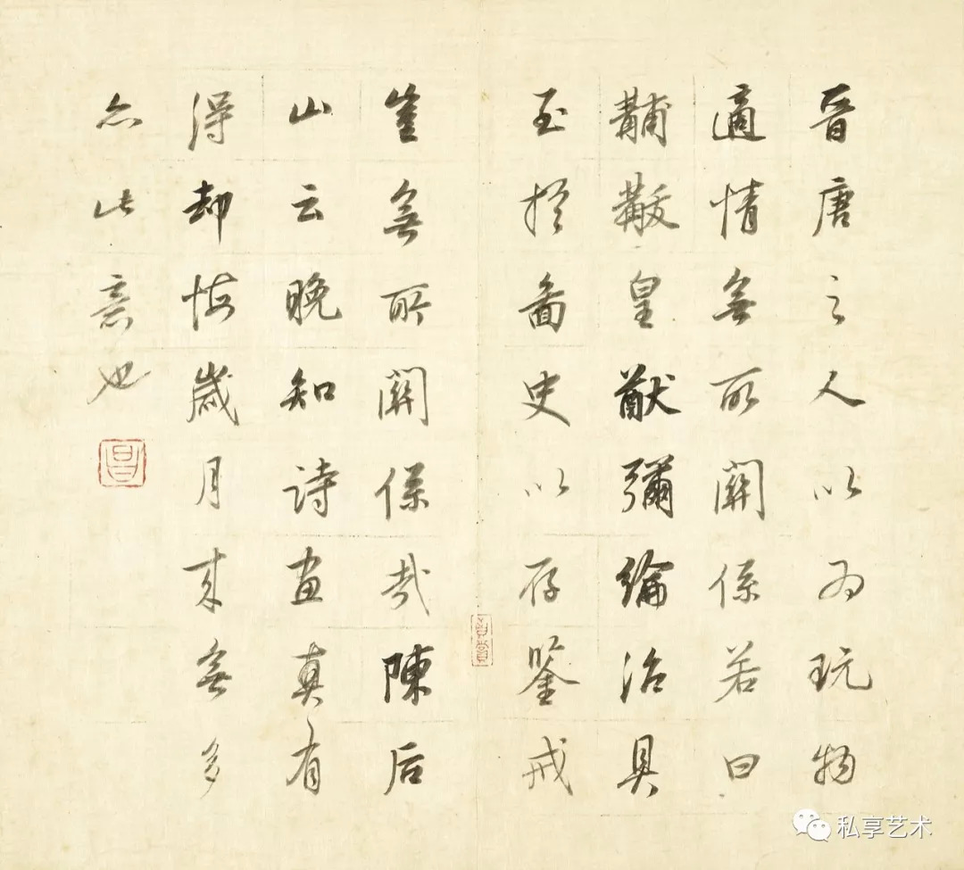 今天我们从一些传世作品来看,二位的批评也不无道理。「空、怯、寒、俭」这些批评之词显然也说中了要害。尽管我们可以理解董其昌追求的是平淡天真,但是一味的平淡则导致作品精气神的贫乏,刻意内敛则导致视觉冲击力的不足。今天,我们欣赏董其昌的书法作品的同时,是不能不带有些许遗憾的。