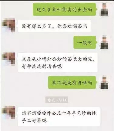 在前期完全不提茶叶的事,就是慢慢跟你聊感情。每天嘘寒问暖的,跟个小女友似的。