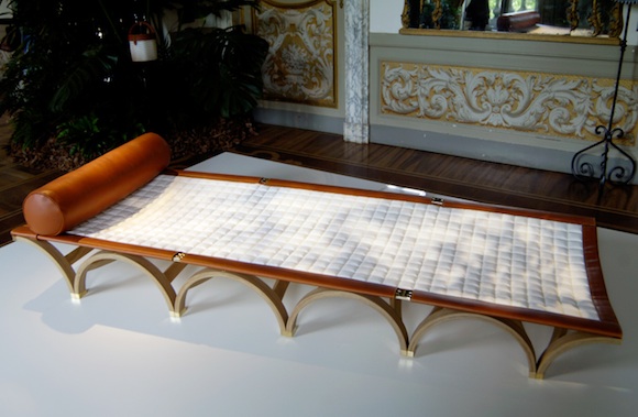 这个系列家具的用料讲究,牦牛毛、软皮革、镀金配件都是使用频率很高的素材。而因为要考虑到折叠性以及打开使用时的舒适程度,每一件家具在平衡性、实用性角度都做了精心的设计,全手工制作也保证了每一件产品的质量。