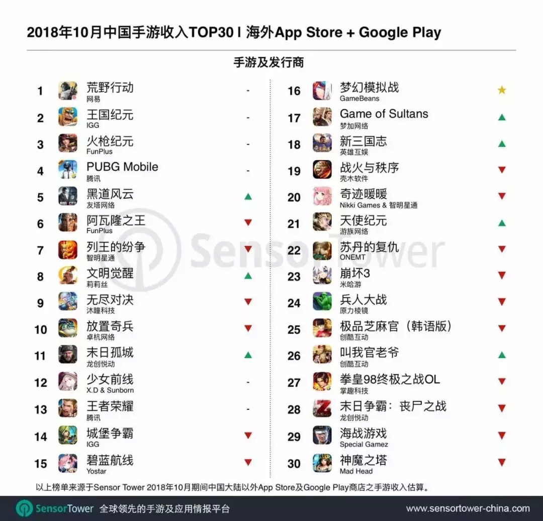 最近,Sensor Tower的“2018年10月中国出海手游排行榜”,以及App Annie的“2018年10月中国App发行商出海收入榜单”先后正式发布。海外市场的竞争激烈程度日益加重,从10月份的头部排名来看,重度产品占据了收入大头,超休闲游戏则引领流量。