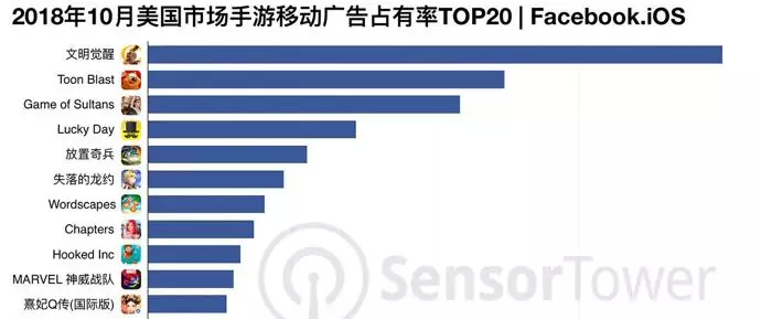 另一方面,《文明觉醒》继续延续黑马之姿,在9月一上榜就拿下第21名后,10月再接再厉升到第8名。这也是因为《文明觉醒》在9月中下旬才开启全球大规模推广的缘故,比如Sensor Tower公布的10月Facebook买量榜单中,《文明觉醒》就是第一大户。