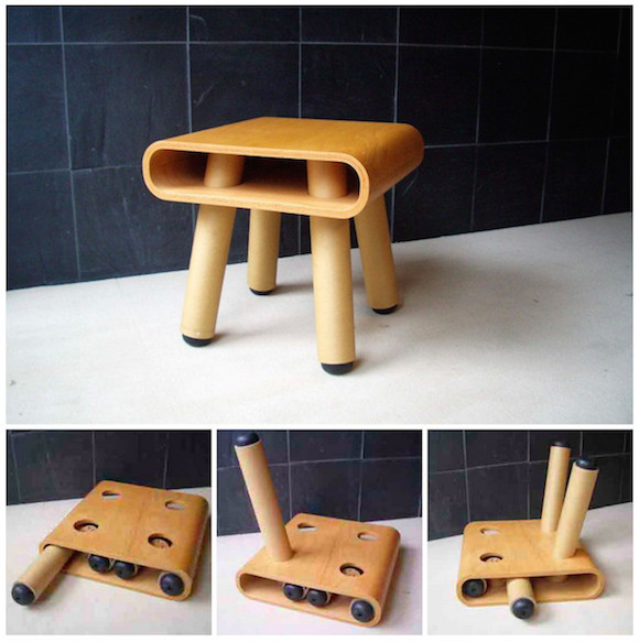 纸筒胶合板凳子的凳面使用胶合板材质,凳腿则是坂茂擅长的可回收纸筒。除了体现环保精神外,便于收纳也是这款凳子的一大特色。