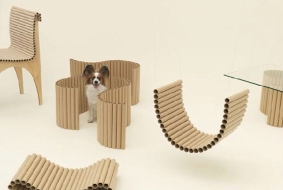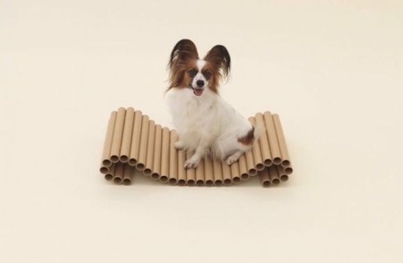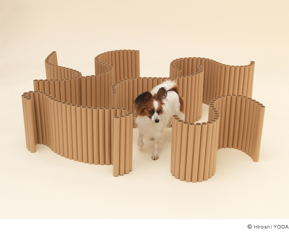 无印良品艺术总监原研哉于2012年发起“Architecture For Dogs”计划,集合多位设计师与建筑师设计狗屋,旨在为狗狗与人类提供更幸福的生活。坂茂用纸筒加入两根金属线,设计了一个可以随意变形的纸筒毯。主人可以根据自己的喜好将它变为各种形状的狗舍,甚至还可以给自己做一个坐垫。