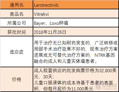 美国FDA在11月26日公布了larotrectinib的获批信息,原标题为“FDA批准Larotrectinib用于治疗NTRK基因融合实体瘤”。