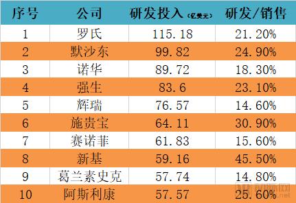 2017年全球研发投入TOP10药企