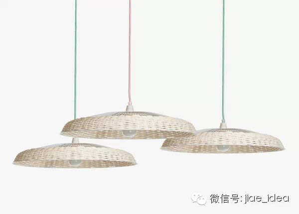 将风扇的扇叶取下,为框架添加朴实的编织,再安上灯泡就成了一盏田园气息的吊灯。