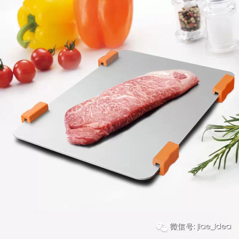 好在快速解冻板拥有绝对的热情——肉和它接触的面积越大,解冻便越快。你可以在一边准备其他菜品,等待肉恢复初次见面的松软。