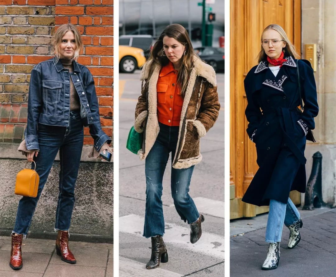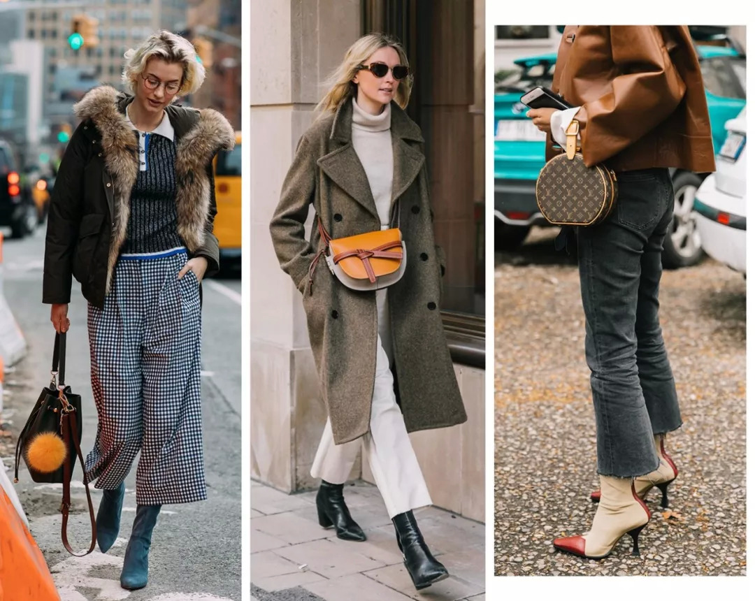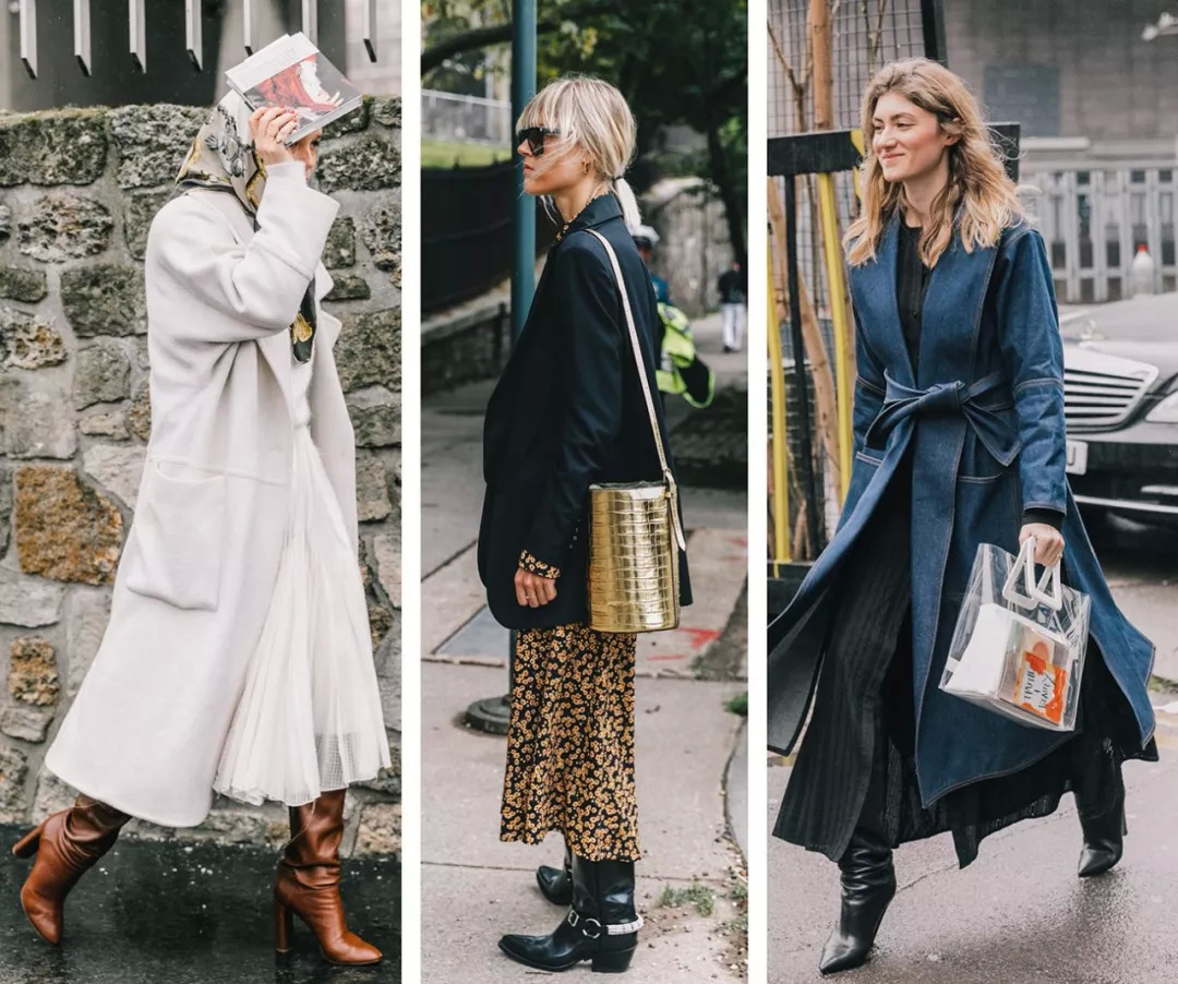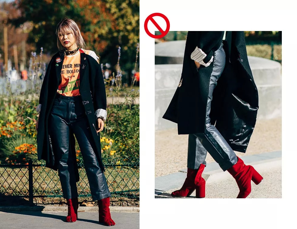 讨喜的是今年时装精们也有开始注重养生搭。比起往年再冷也要露一节脚踝的“自虐式时髦”,今年的时装精开始爱上用裤长遮住靴口的套路。