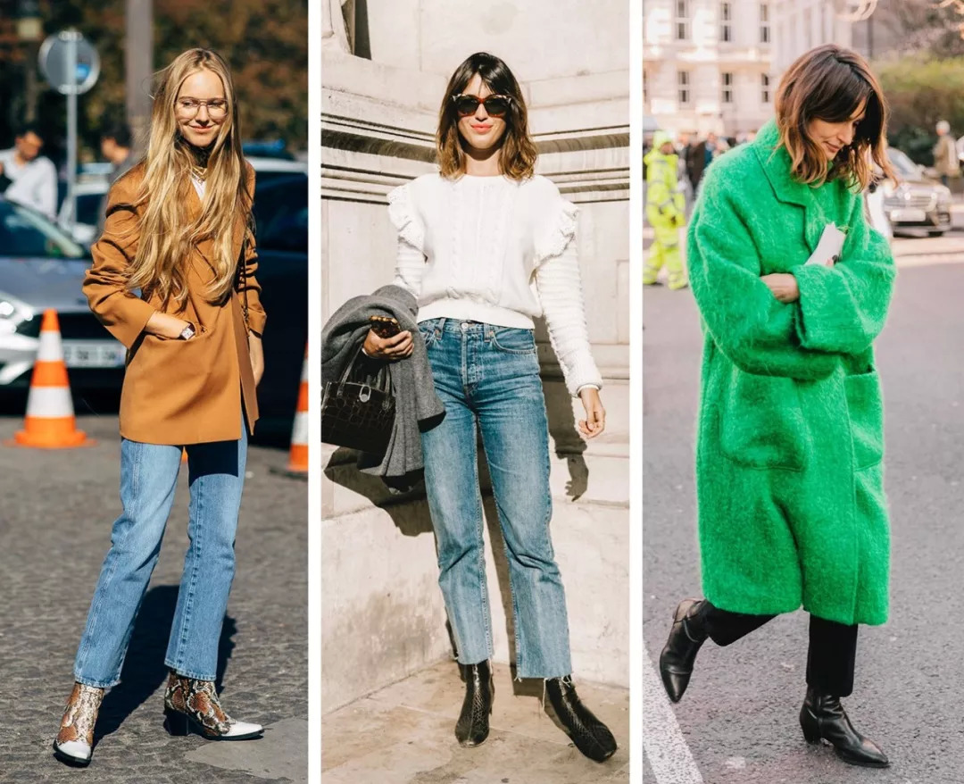 即便是小脚口的八九分裤,时装精们也热衷于用窄口靴来搭配,有种把纤细麻杆腿一直延伸到脚底板的既视感~~
