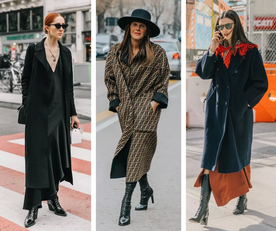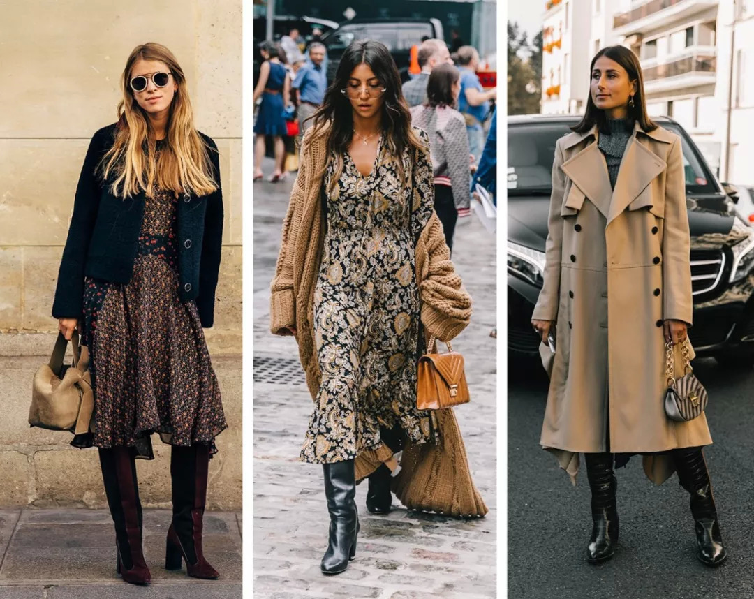 今年特别火的靴子是干练直线条的骑马靴。靴筒有一定松量,材质也比较硬挺,穿起来超级酷。搭配飘逸的裙摆正好有种反差混搭感。