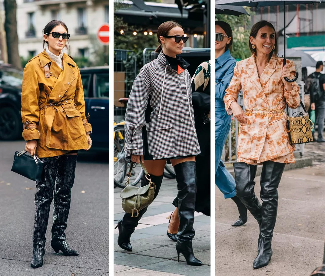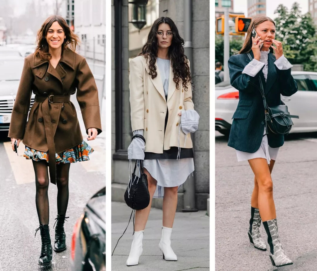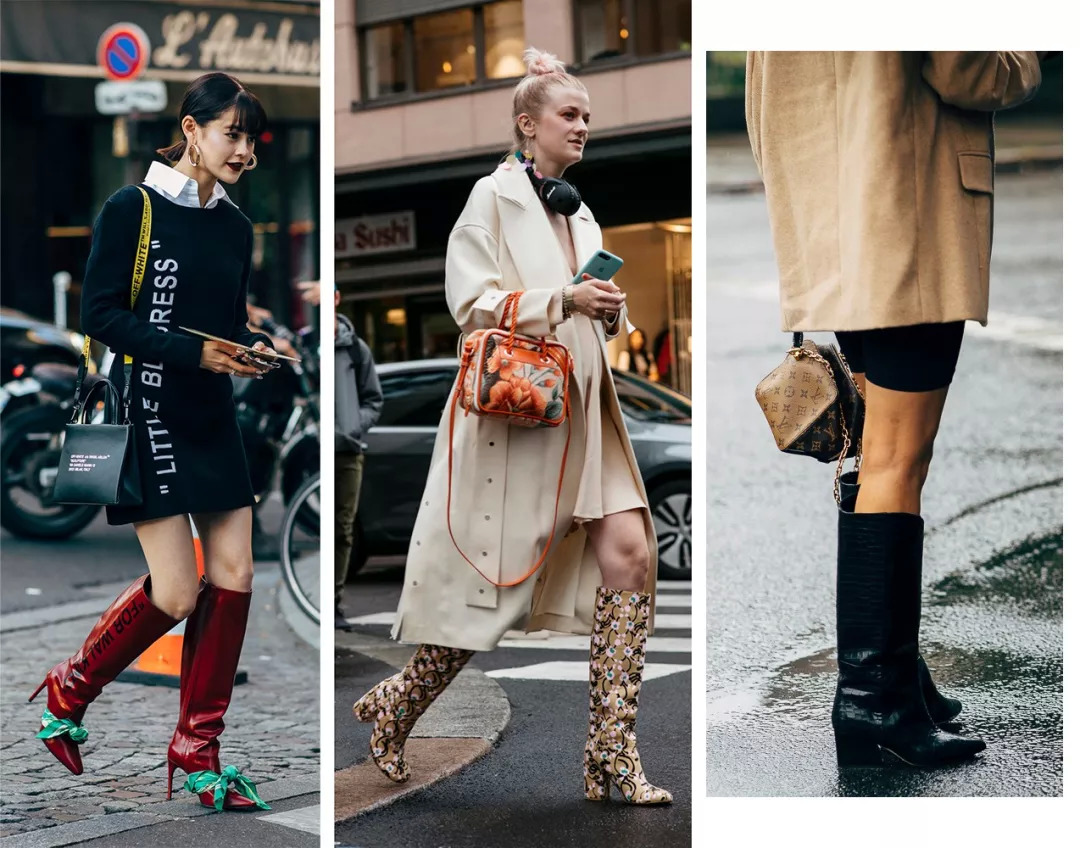 达人们不仅用这双靴子搭配中长裙,连短裙短裤也被它承包了。还包含了各种特殊设计,像动物纹、鳄鱼皮、印花等…都有出现。