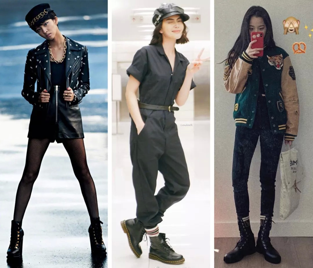 女明星们一个个也都很爱穿~~木村光希的时装大片,泰国大美妞Mai和娜比的出街搭配,都选择了帅气的马丁靴。
