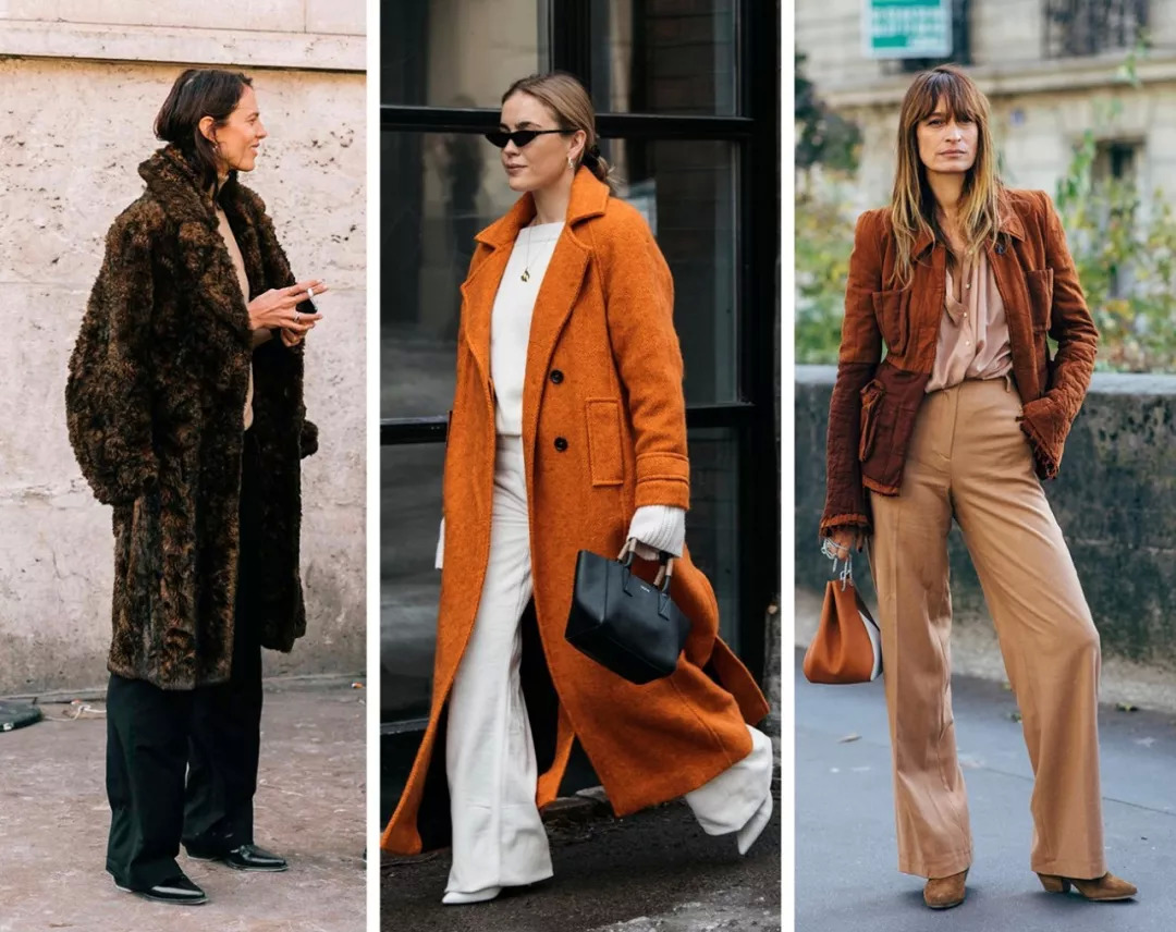 还有一些复古的配色,像深棕、暗红、暗绿色都很值得穿,而且非常适合秋冬,比基本款黑色更有看点。