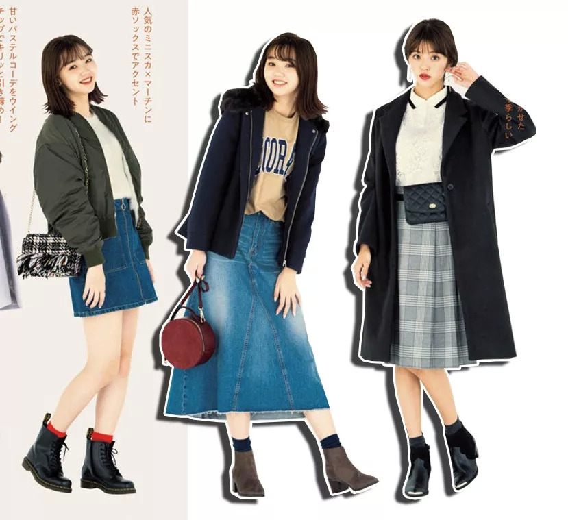 日杂中灰色调的袜子出现频率也很高,搭配上温柔配色的裙装,会显得人特别柔和。