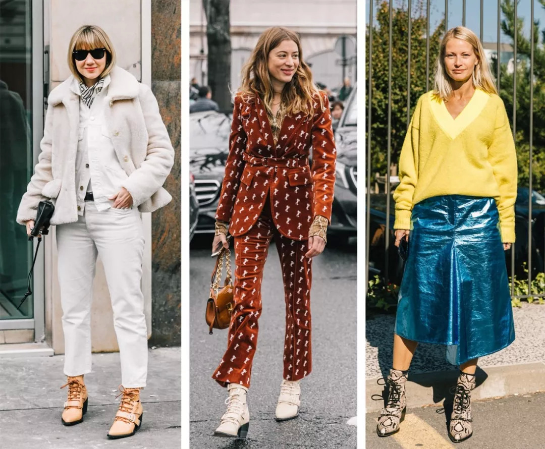 而今年的系带靴才不止马丁靴这一种。各种粗跟的、细跟的甚至长筒的靴子,都增加了系带设计。