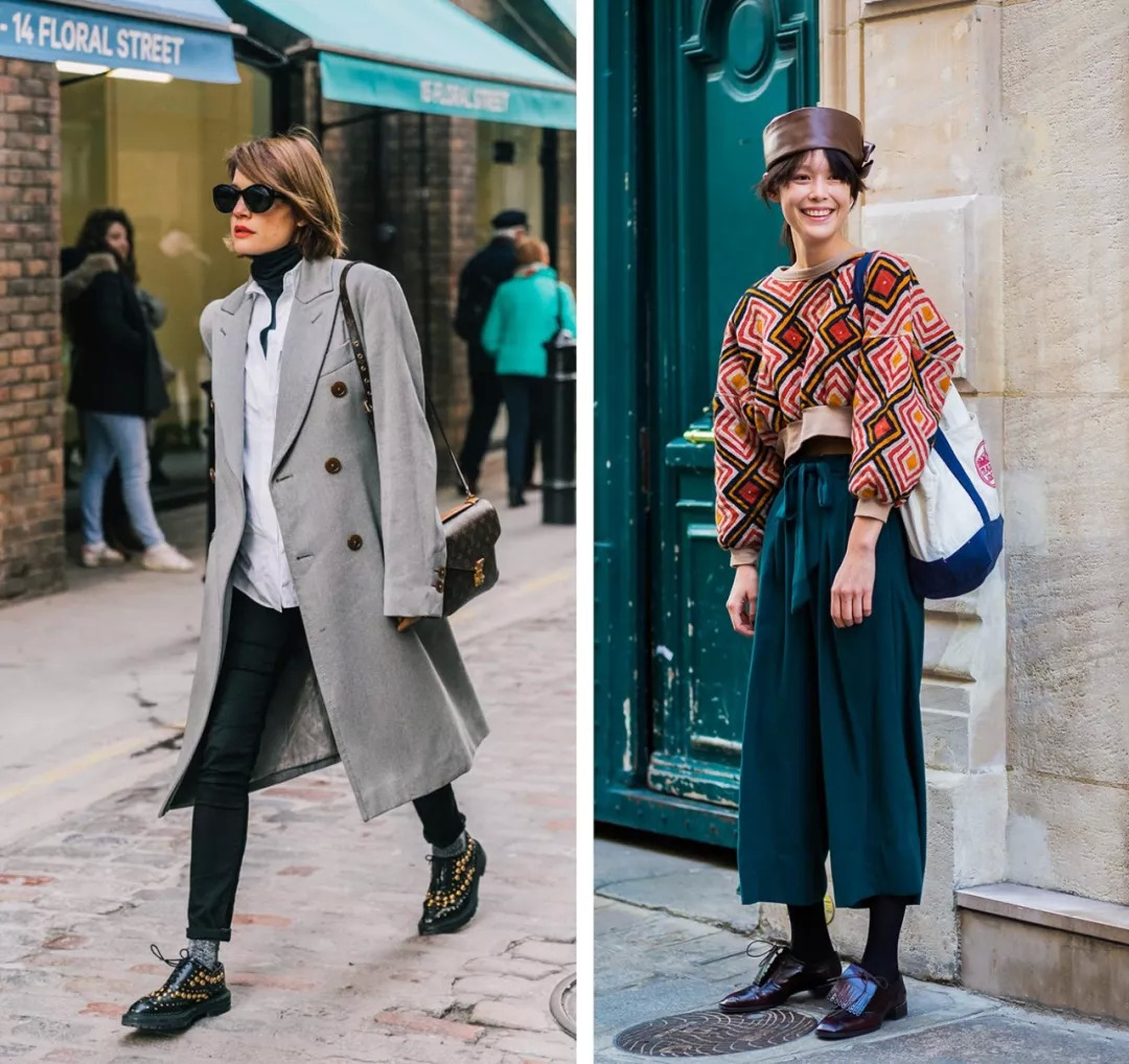 牛津鞋算得上是单鞋界在冬天最能拿得出手的单品了。街拍中时装精们超擅长于用中性风的牛津鞋搭配出酷帅style!