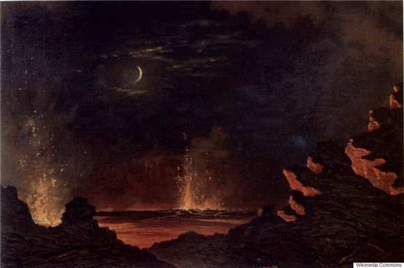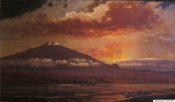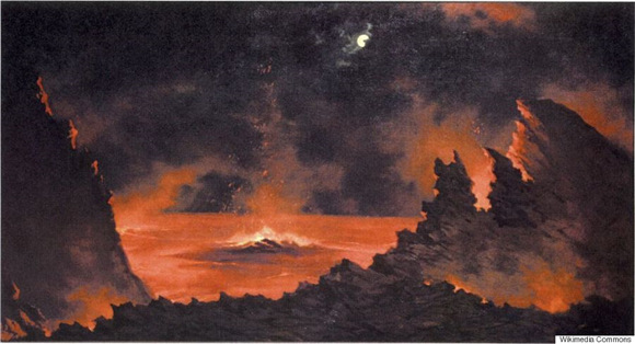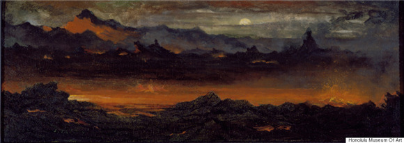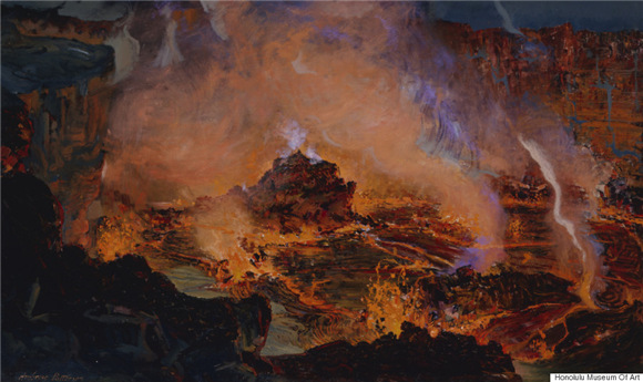 这些画家现被称为火山学派(Volcano School),其作品给人们展示了135年前夏威夷火山喷发时幽灵般的奇妙景象。