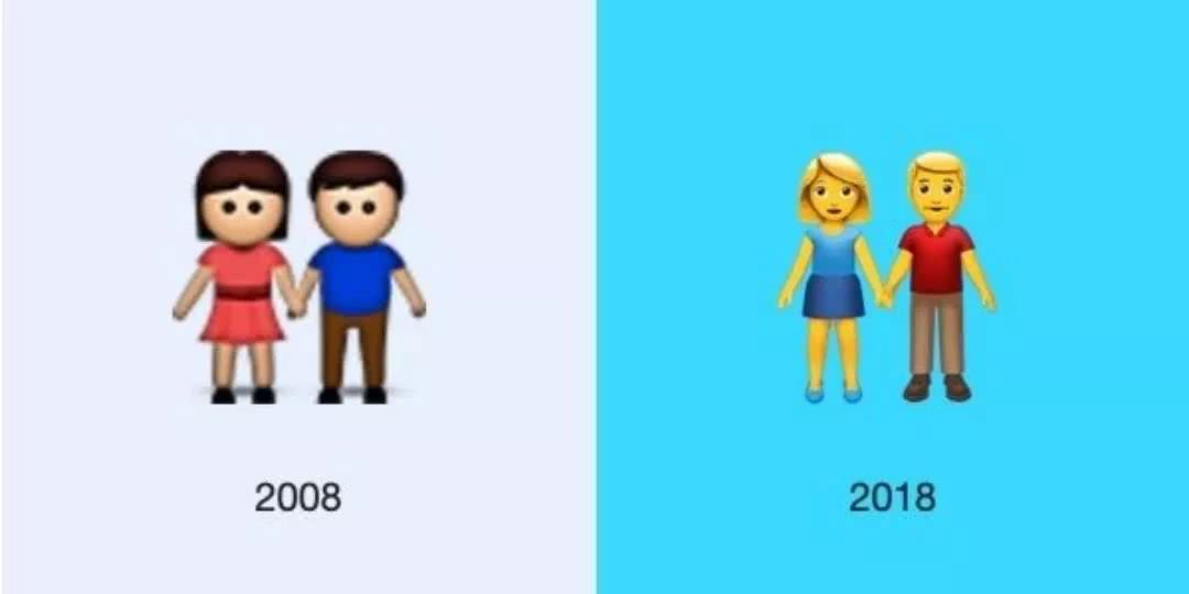多年来,苹果的emoji表情已经发生了很多变化,其总量从2008年的471个增加到2018年的2776个,其中许多是性别和肤色运动的结果。