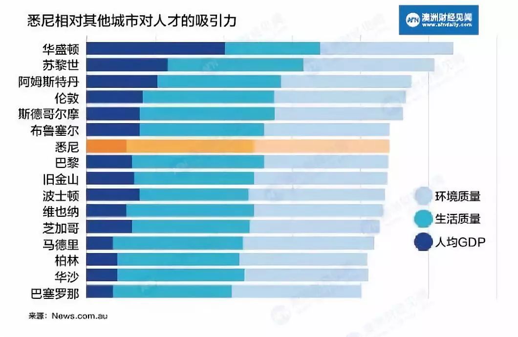 然而,尽管在金融领域享有较高的国际声誉,但是报告指出,和其他全球主要城市相比,悉尼在吸引全球人才方面仍不占优势。
