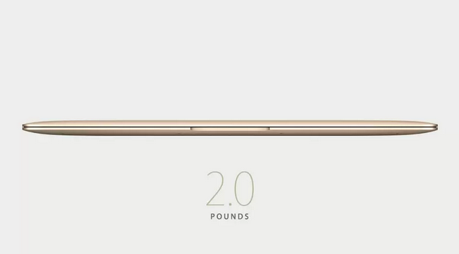重量为2磅,即920g。最厚处13.1 毫米。如果你或你的朋友已经拥有一台Macbook Air,你会发现新的MacBook比它更轻薄。