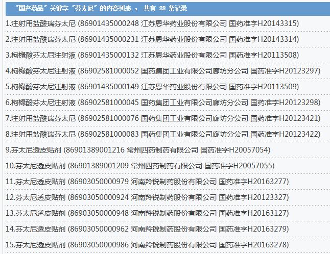 此外,恩华药业(002262.SZ)、羚锐制药(600285.SH)、国药集团工业有限公司廊坊分公司(下称国药廊坊)、常州四药制药有限公司(下称常州四药)也拥有芬太尼有关产品批号。