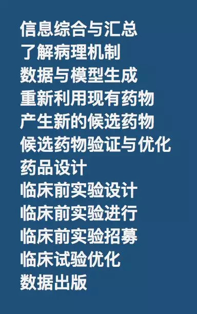 根据科技博客 BenchSci 的一篇文章,按照一款新药从一个灵感变成商品,我们按照流程,可以把这些公司分成以下十二大类: