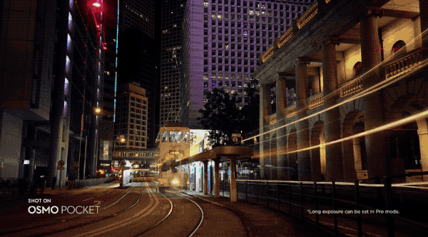 还有看起来很酷炫的长曝光摄影,有了口袋灵眸以后,连三脚架都不用就能拍,暗光条件下也能进行拍摄。