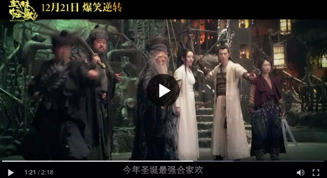 人家是这么开场的:继春节档冠军《红海行动》、国庆档冠军《无双》后,我们又迎来了贺岁档冠军级影片《武林怪兽》!