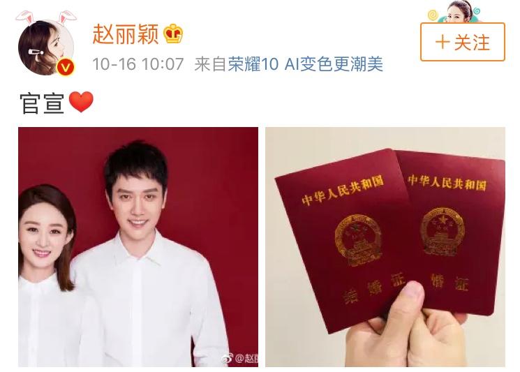 2018年10月16日,赵丽颖与冯绍峰同时在微博上发布“官宣”,公布二人结婚喜讯。两人都是粉丝众多的明星,婚讯备受关注,引发网络疯狂转发。几天后,“官宣”纷纷出现在新旧媒体上,都是某个人或某机构宣布的某消息。“官宣”迅速走红。“官宣”应是从“官网”“官微”衍生而来,义为“官方宣布”。其“官方”指某种权利的拥有方。“官方”本指政府方面,如“官方人士”“官方消息”等,把个人、机构等非官方行为称为“官方”,也有强调其权威性、可靠性的意味。