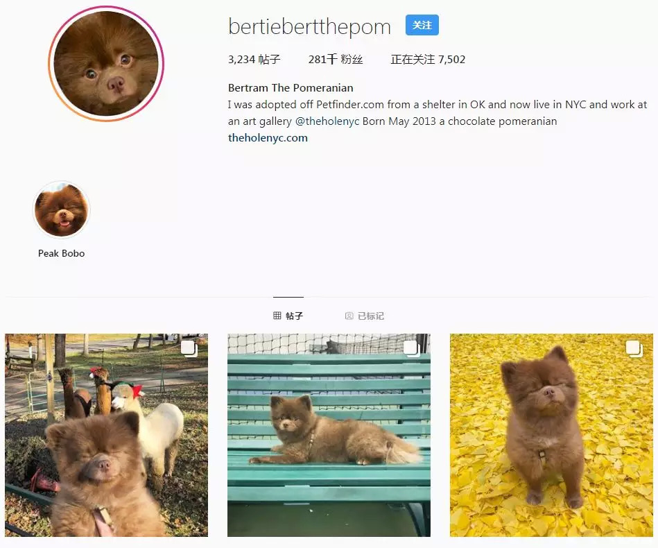 Bertram是Instagram上一只拥有28万粉丝的网红博美。