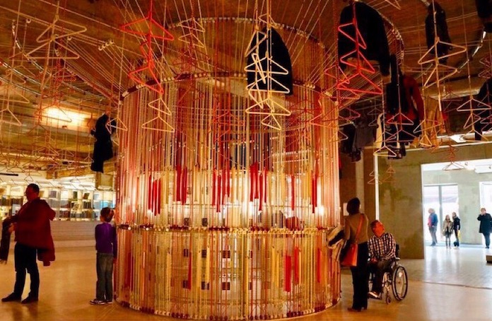 值得一提的是,美术馆中还有一件独特的互动性“展品”——“半自助”衣帽间。这个由滑轮、绳扣、一圈栅栏组成的衣帽间,根据人们挂上的衣服和高度不同,时刻变换着模样。