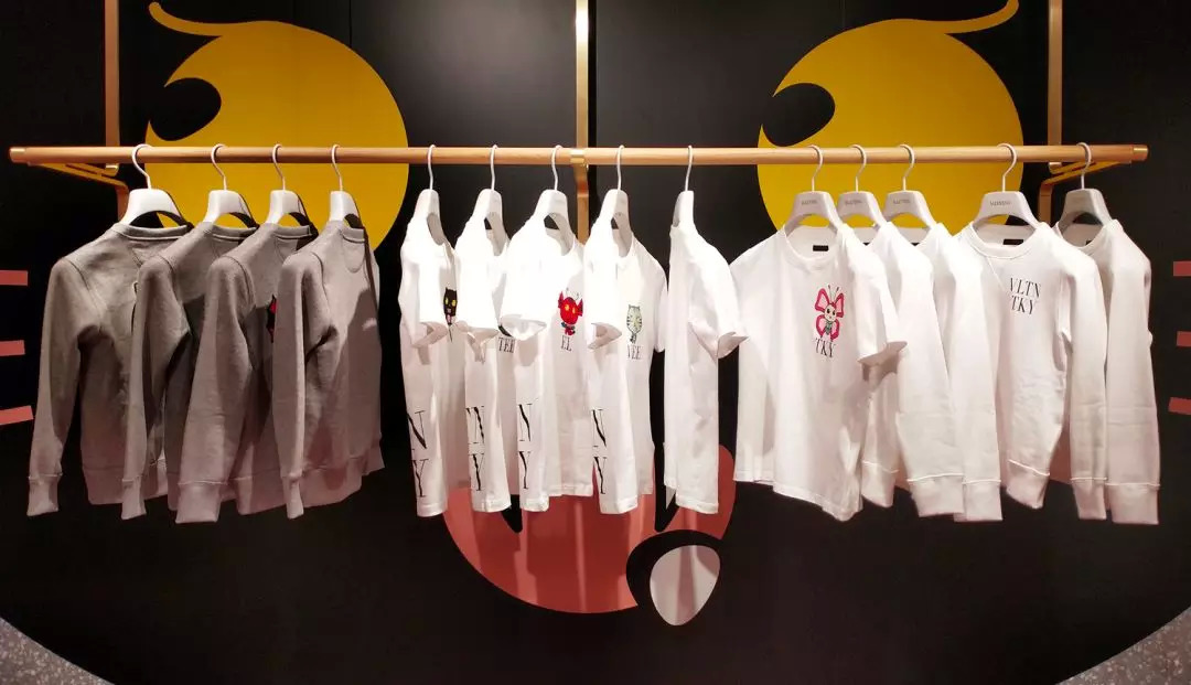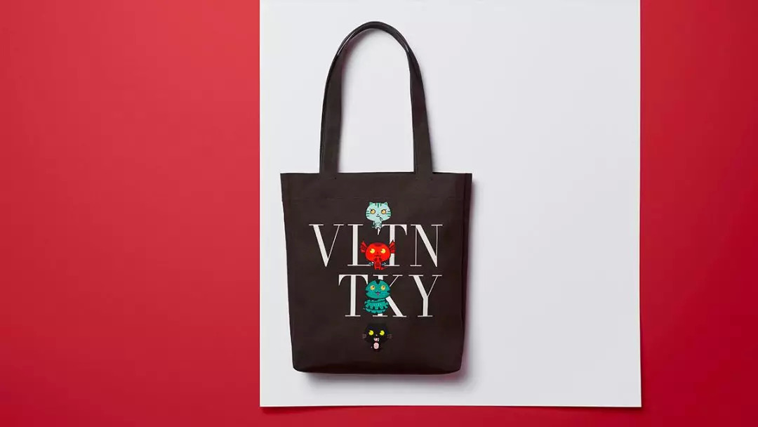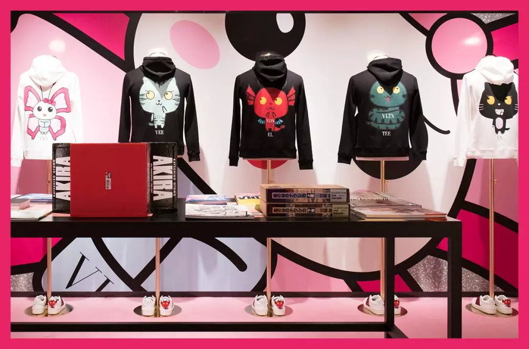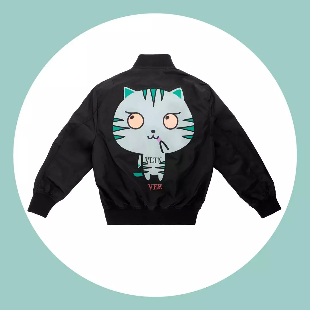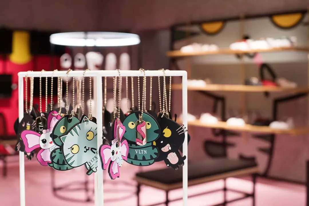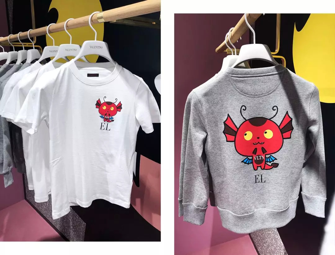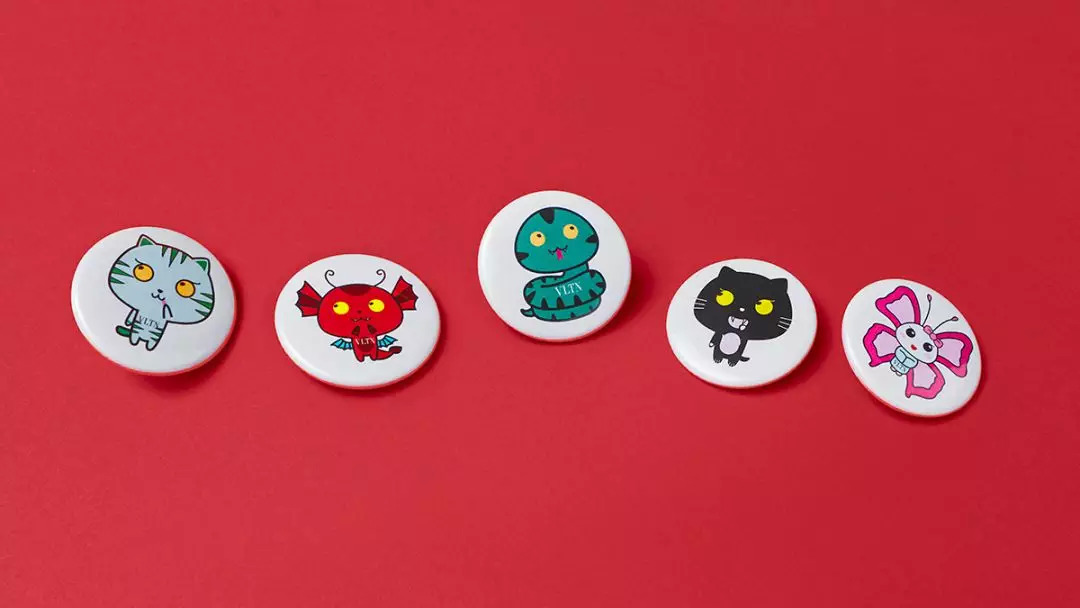 这只猫呢,是Valentino的东京限定漫画系列里的。加上它,一共有五个小动物,都是Valentino以前衣服上经常出现的,只不过都变成大头漫画了。