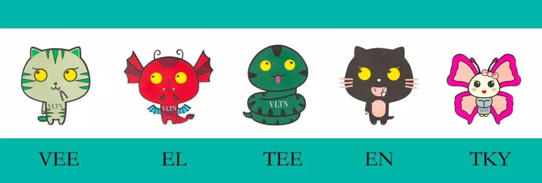 每个小动物也都有名字,前四个加起来是VLTN(Valentino),蝴蝶叫TKY(Tokyo)。而#ValentinoTKY 就是这次系列的名字。
