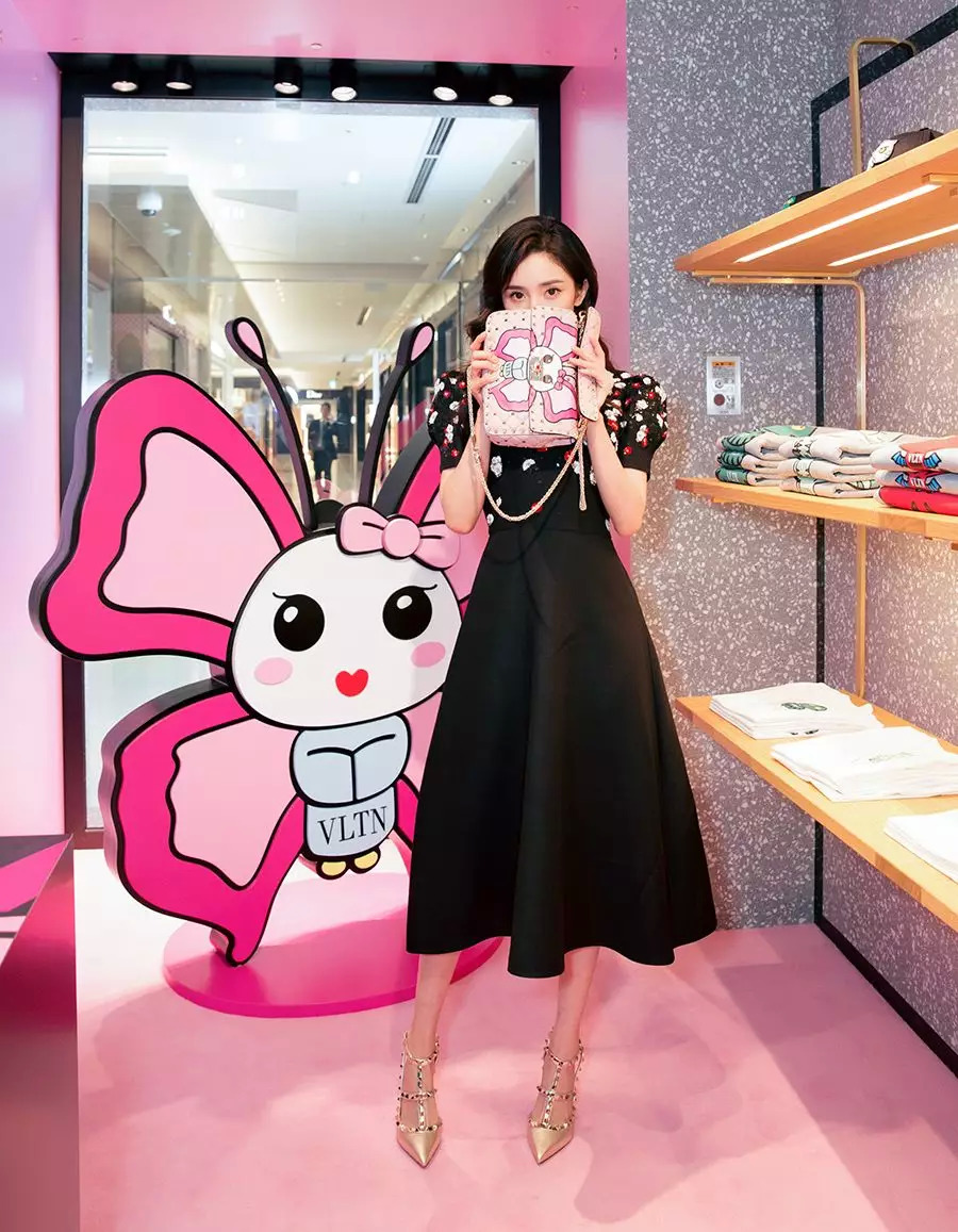 杨幂也没挡住这个包包的可爱攻击,看到那个粉色小蝴蝶就走不动路了。
