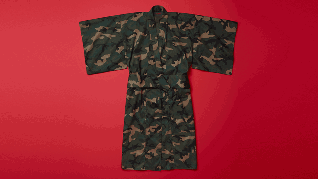 就是全店最帅的那件迷彩浴衣,这完全是为我定制的呀,反正我听到它一直在对我说,“带我回家”。