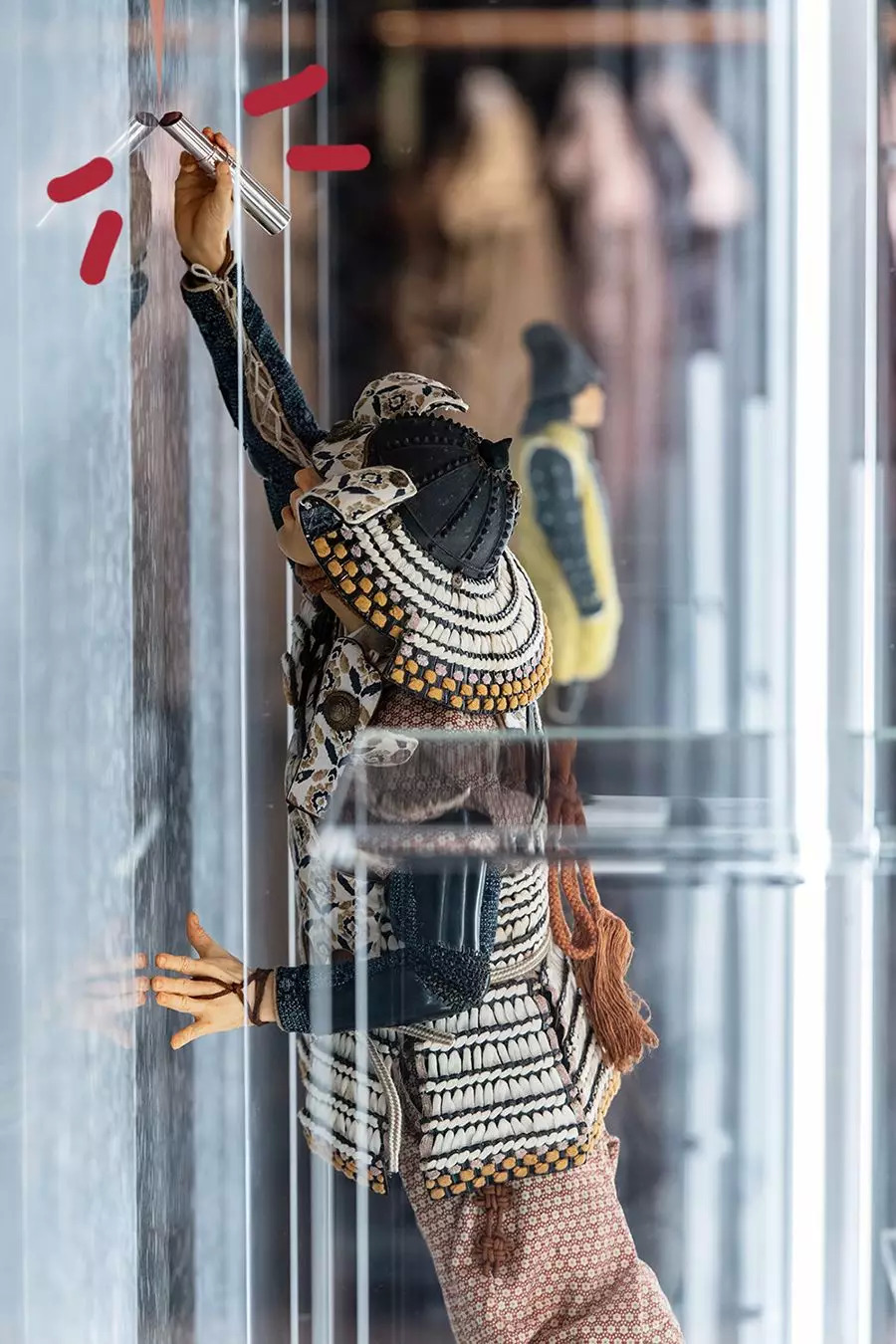 比如和雕塑家合作的武士玩偶,喜欢玩偶的女助理一看到这些眼睛就亮了,也不拍宇博了,跑去拍它们了。